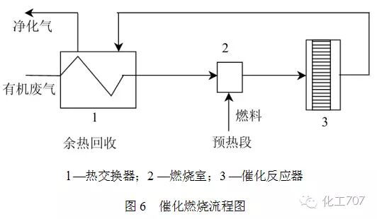 催化燃烧中,预热式是一种基本的流程形式。有机废气在进入反应器之前,要在预热室中的加热,因为有机废气温度低于100摄氏度时,浓度低,热量不能自给。燃烧净化后,与未处理的废气进行热交换,回收部分的热量。煤气或电加热是该工艺常用的方法,加热到催化反应所需的点火温度。