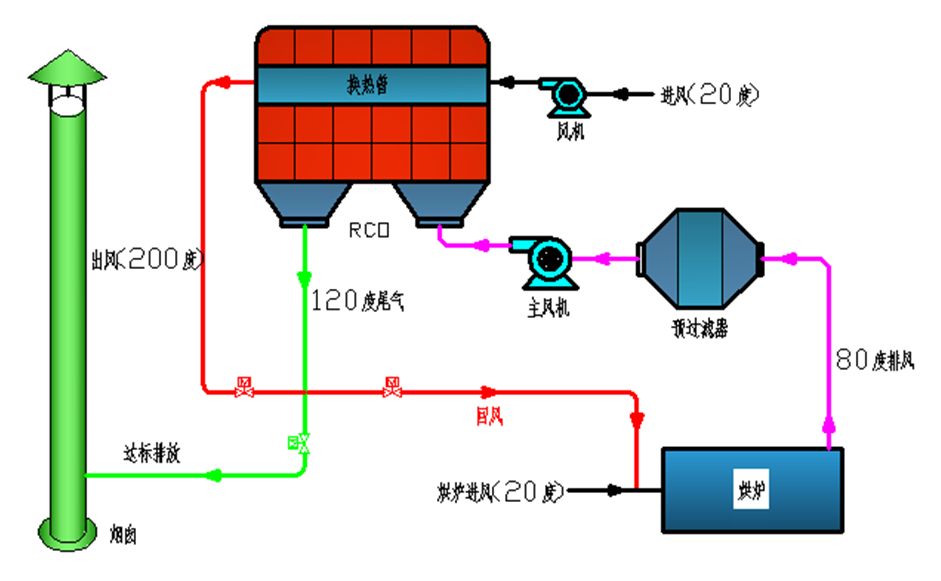 RCO装置的工艺简单,管理方便且运行时无二次污染。 (1)在RCO内部增加取热结构,便于RCO超温控制,同时热量可充分利用,已申请了zhuanli。 (2)使用“抗中毒性好”、耐高温催化剂,催化效果好并长期稳定,同时耐温可达650℃。已申请了zhuanli。 (3)操作方便:设备工作时,实现自动控制。 (4)能耗低:设备启动,仅需15~30分钟升温至起燃温度(有机废气浓度高时),其后运行耗能仅为风机功率。 (5)安全可靠:设备配有阻火除尘系统、防爆泄压系统、超温报警系统。 (6)阻力小、净化效率高:采用先进的贵金属钯、铂浸渍的蜂窝陶瓷催化剂。 (7)余热回用:余热可返回烘道,降低原烘道中消耗功率;节约生产能源。 (8)使用寿命长:催化剂一般5年更换,并且载体可再生。 蓄热式催化氧化+热量回收技术主要可应用于各类工业企业所排放的挥发性高温、高浓度有机废气的净化治理:包括石油化工、制药、造纸、油漆涂料、塑料等行业排放的苯、甲苯、二甲苯、乙苯、苯乙类、烯烃、烷烃、醇类等挥发性有机物等气体,具有广阔的应用前景。